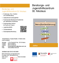 Jobfüxe sind Experten für Ausbildung und berufliche Qualifizierung. Das Jobfux-Projekt richtet sich an Schüler*innen und deren Erziehungsberechtigte in den 7., 8. und 9. Klassen mit Bildungsgang „Berufsreife" und bietet Nachbetreuung nach dem Weggang von der Schule an. Der Jobfux begleitet und unterstützt beim Übergang von Schule und Beruf. Im Vordergrund steht der nahtlose Übergang in Ausbildung und damit der Einstieg in ein qualifiziertes Berufsleben. Die Jobfux-Projekte werden durch das Ministerium für Arbeit, Soziales, Transformation und Digitalisierung Rheinland-Pfalz, aus Mitteln des Europäischen Sozialfonds Plus und durch die Landeshauptstadt Mainz gefördert.