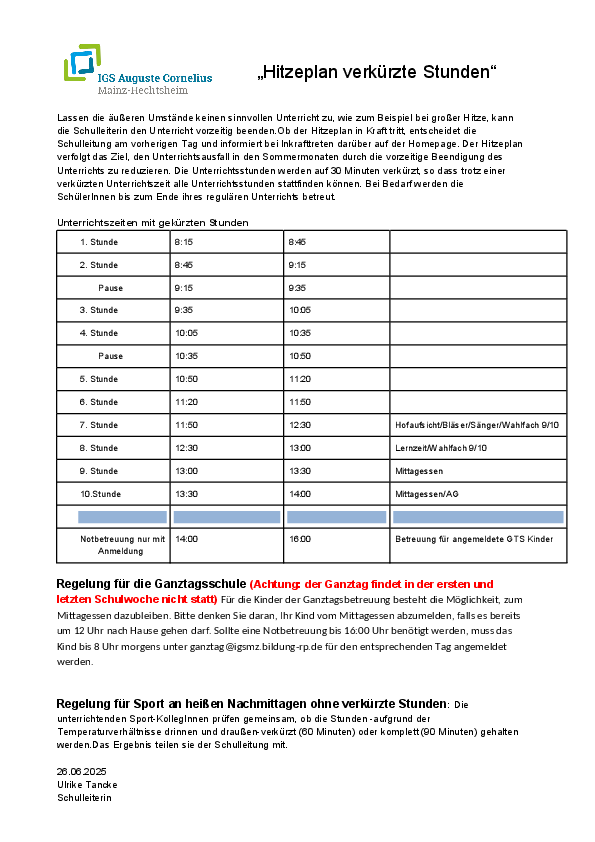 Unterrichtszeiten